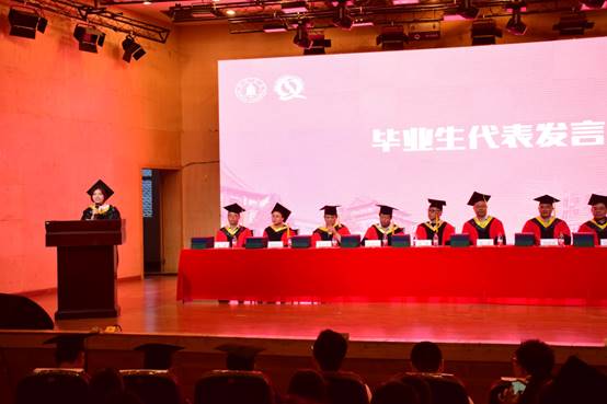 何有节院长代表学院党政,向圆满完成学业并获得学位的174名本科生、88名硕士研究生、18名博士研究生表示热烈祝贺,向为同学成长付出心血的所有教职员工、学生家长表示感谢。何院长回顾了2019届毕业生从进校到现在与学院的共同成长和健康快速的发展。为同学们指出新时代为同学们创造了广阔的发展空间,中华民族的伟大复兴为同学们指明了奋斗的方向,相信大家能谱写辉煌的人生篇章。同时何院长也提出了三点希望,希望同学们志存高远、回馈社会;脚踏实地、立足平凡、认真工作;也希望同学们常回家看看。最后,何院长祝愿全体毕业生在人生新的征途中,找准定位,抓住机遇,在新的岗位上创造出无愧于伟大时代的辉煌业绩。