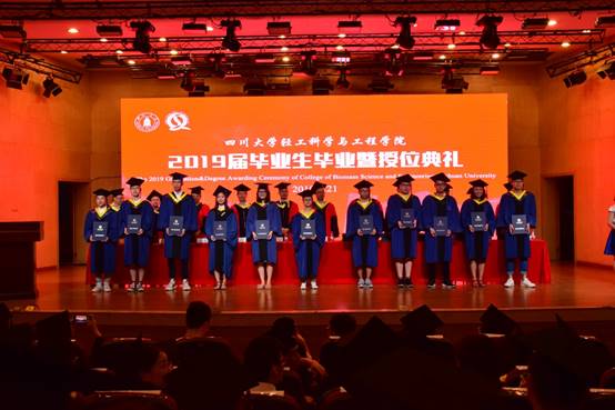 四川大学副校长梁斌教授,bw必威西汉姆联官网学位评定分委会副主席、副院长何强教授,学院党委书记刘晓虎副教授,学院学位评定分委会委员、教授委员会委员何有节教授、彭必雨教授、单志华教授、朱谱新教授、李国英教授、周荣清教授、金勇教授、阎斌教授出席典礼并在主席台就座。教师代表、校友代表、学生家长代表、学生代表以及2019届全体毕业生参加了典礼。典礼由学院党委副书记冯国涛主持。