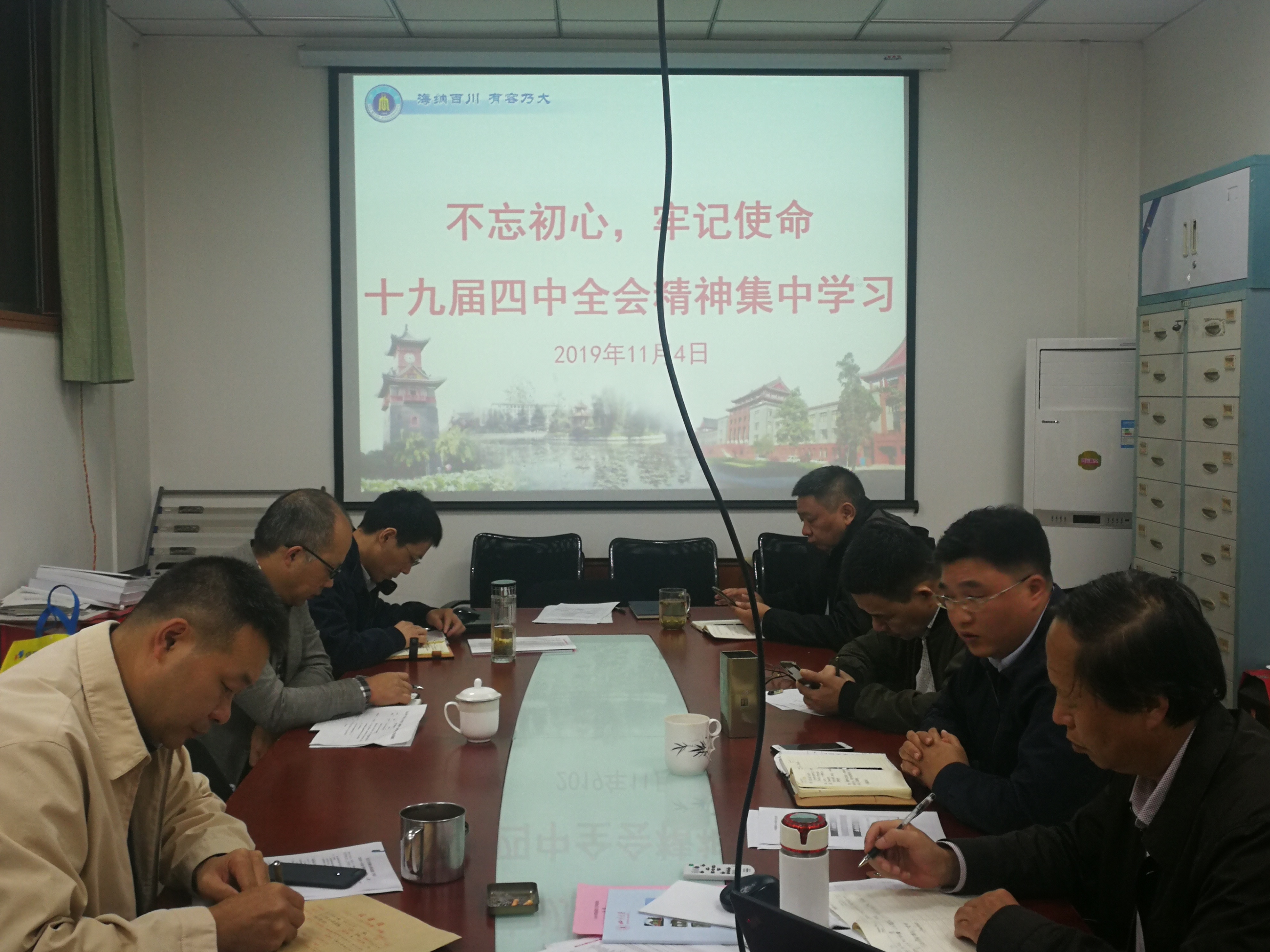 2019114日、117日,bw必威西汉姆联官网在纺工附楼201会议室召开十九届四中全会精神学习。学院领导班子成员、教职工党支部书记参加了本次集中学习。对十九届四中全会精神中坚持党的领导、坚持社会主义制度、制度保障、治理方略等方面进行了重点学习。下一步,还要组织全院师生对十九届四中全会精神进行学习研读。