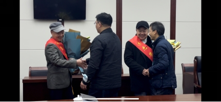 最后,刘晓虎书记对两位退休教师授予“光荣退休”的绶带,教师代表为两位退休教师献花并合影留念。