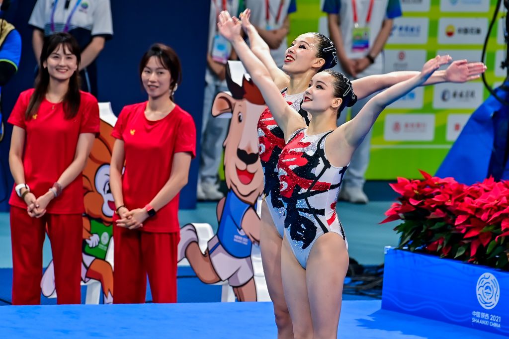 2021年9月15日至27日,第十四届全国运动会在陕西省举行,为更好地诠释体育精神、展示四川风采,四川省花样游泳代表队特邀请bw必威西汉姆联官网时昱老师创作多款比赛项目服装及造型。时昱老师创作的每款赛服从设计理念的诠释到图案呈现,从款式塑造到色彩表现都经过了无数次的尝试与打磨,在满足运动属性与功能诉求的前提下,将传统美学融入体育文化,又将时代风格融入体育精神,整个设计极具内涵且富有视觉冲击,获得评委及选手的一致好评与认可。