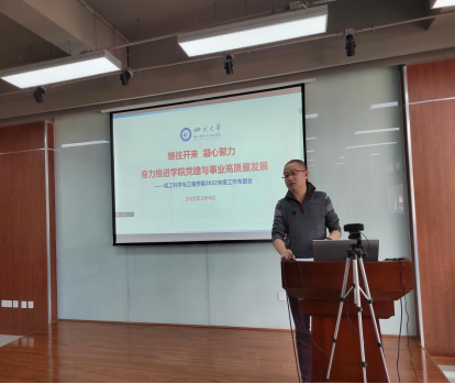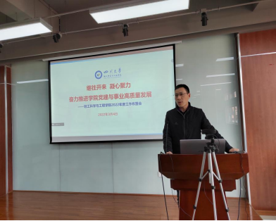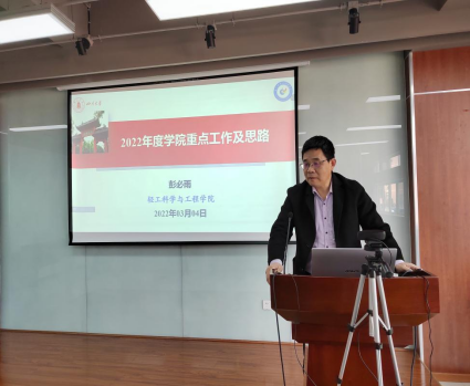 随后,彭必雨院长从学校主要目标及任务、学院情况分析、学院建设目标及思路三方面向全院教职工深入分析了学院在“十四五”和新一轮“双一流”建设发展中面临的优劣势,提出了下一步工作思路与举措。彭院长提出,各专业/学科需进一步凝练学科发展方向和目标,以“碳中和+”、“医学+”、“信息+”等国家重大发展战略为契机,深入探索学科/专业交叉融合的途径,深入思考新工科如何“破题”,奋斗“十四五”、聚焦“双一流”,实现高质量人才培养、高层次人才队伍和高水平科学研究,全面推进学院高质量内涵式发展。
