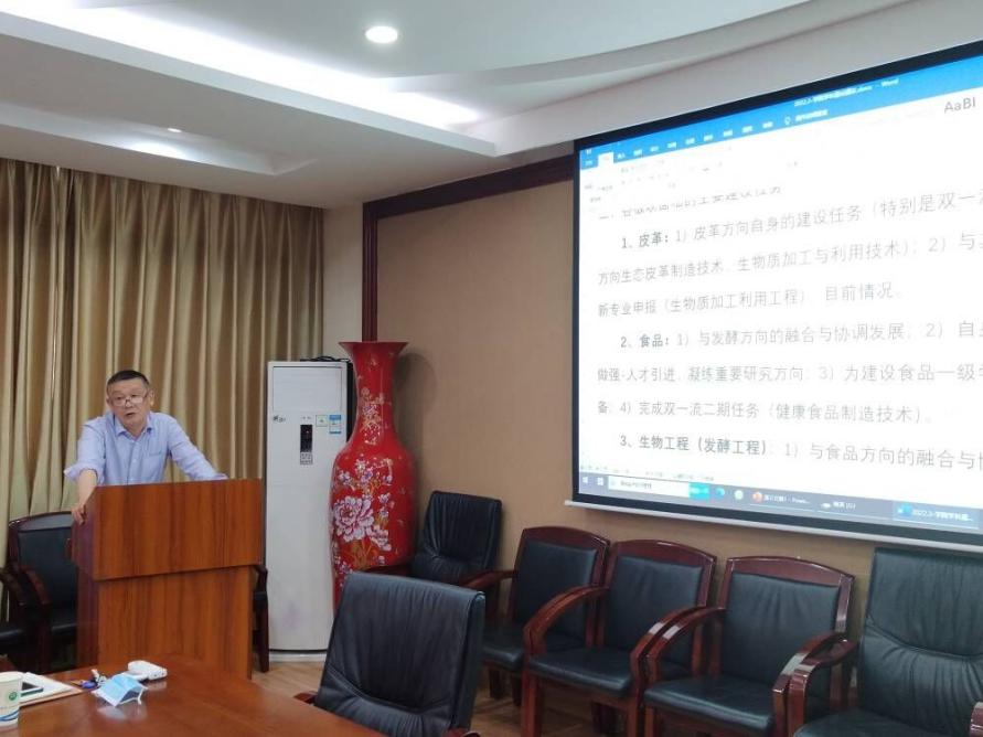 换届选举结束后,新一届教授委员会召开了第一次会议,教授委员会主任石碧院士就学院学科专业发展建设发表讲话。石碧院士紧紧围绕国家发展重大需求、教育部集成攻关大平台建设计划、天府永兴“碳中和”实验室建设、四川大学“创新2035”先导计划等重大项目,结合新一轮“双一流”重点建设的方向和任务,就学院皮革、食品、生物工程(发酵工程)、服装、纺织五大板块在学科、专业、人才、平台等方面面临的挑战与机遇提出了清晰的发展思路,他希望各位教授与学科带头人一定要把握时代发展机遇,紧紧围绕国家战略需求,认真组织各系所教师充分研讨,积极凝练具有生物质特色的学术研究方向,努力打造卓越的轻工学术名片。