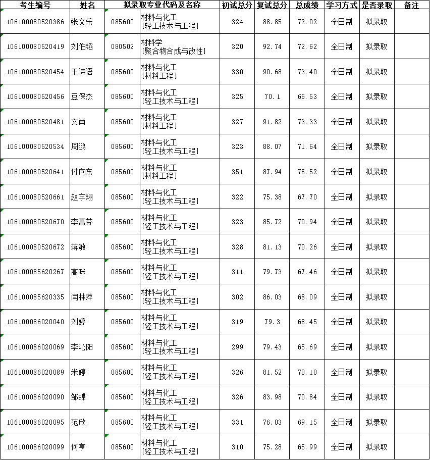 bw必威西汉姆联官网/制革清洁技术国家工程实验室 2020年硕士研究生调剂拟录取名单公示