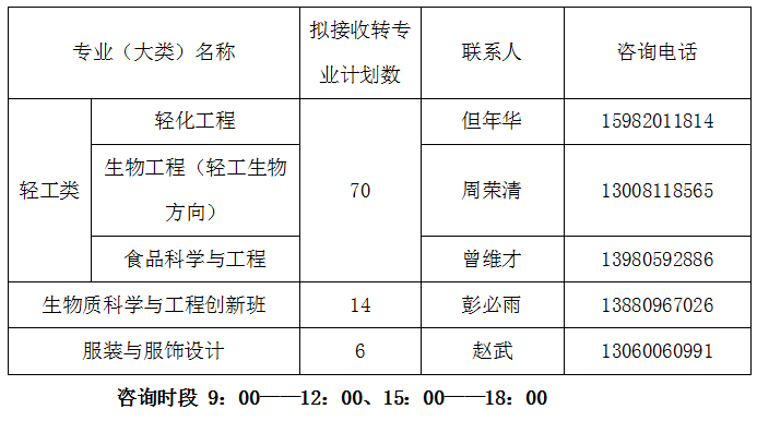 2020年7月14日中午12:00之前,请有意参加选拔的同学将附件2《四川大学本科生转专业申请表》(申请创新的同学请填写附件1《“生物质科学与工程创新班”申请表》)、成绩单及其他获奖证书等支撑材料的电子版打包发送至学院邮箱:644204621@qq.com,压缩包命名示例:拟申请专业名+学生姓名+学号。并加入轻工转专业二次选拔QQ群:1137151691