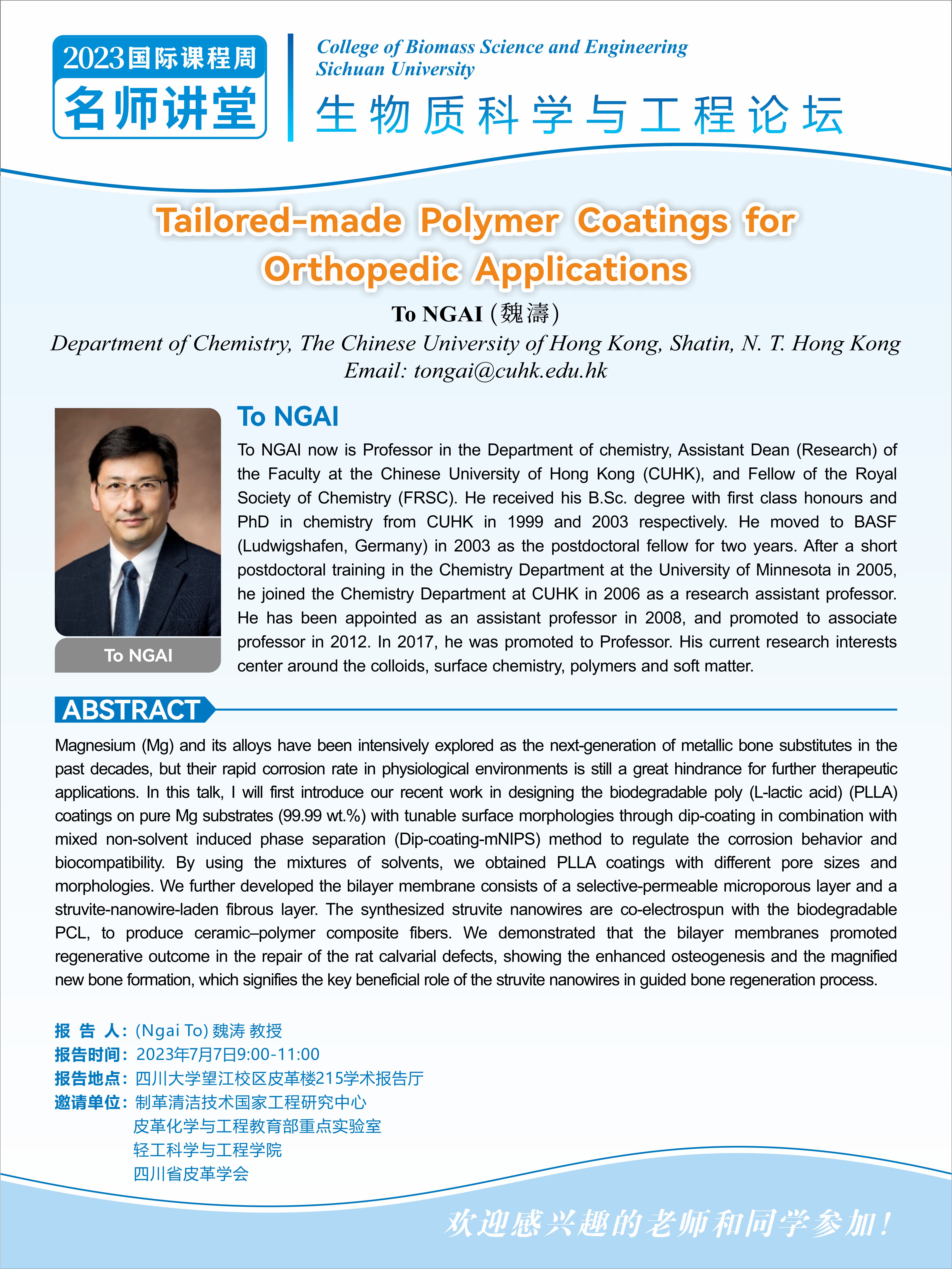 生物质科学与工程论坛:To NGAI教授 学术报告