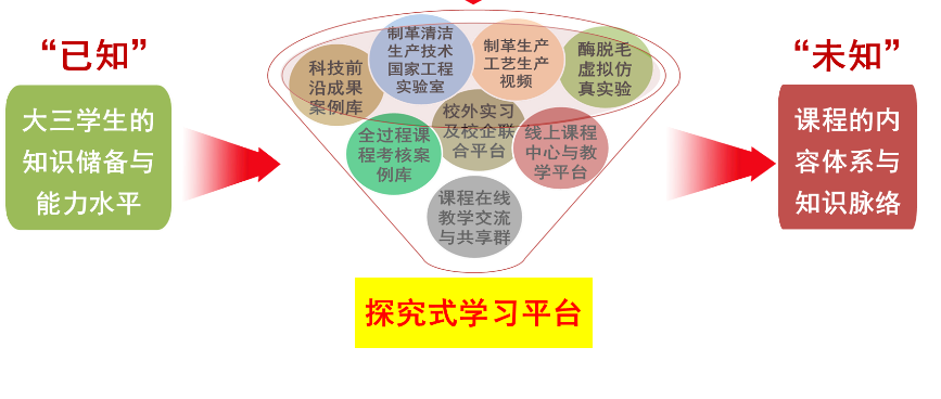 开展课程教学内容的系统重构。将科技前沿成果融入课程。针对知识更新滞后的问题,建设以行业科技发展的新理论、新技术为主的教学案例库,提升教学内容的前沿性和时代性。积极利用现代信息手段丰富课程教学资源,先后建成了《制革工艺学》线上课程平台;《制革脱毛生产实训及脱毛效果可视化监测虚拟仿真实验项目》;可视化制革工艺教学视频库等。经过多年的发展,已经建成了以国家规划教材为基础的、虚实结合、线上线下融合的教学资源体系;为丰富教学方法奠定了基础,并为提高学生对工程认知提供了工具。