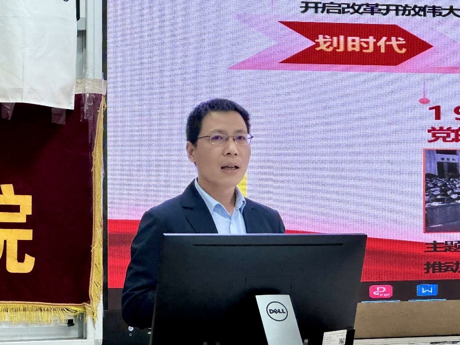 紧接着,冯国涛副书记以《学习贯彻二十届三中全会精神,引领轻工学院教育教学综合改革》为主题进行授课。冯书记围绕党的二十届三中全会主要内容、深化教育综合改革的重要内容及学院教育教学改革成效三大板块展开讲解。冯书记指出,“青年强,则国家强”,国家有可靠的制度保障、学校强劲的学科实力和学院蓬勃的发展潜力,学院助力同学成长成才实施了多元措施和改革方向,希望同学们成为一名有理想、敢担当、能吃苦、肯奋斗的新时代好青年。冯书记的授课深入浅出而不失风趣,赢得了阵阵掌声。