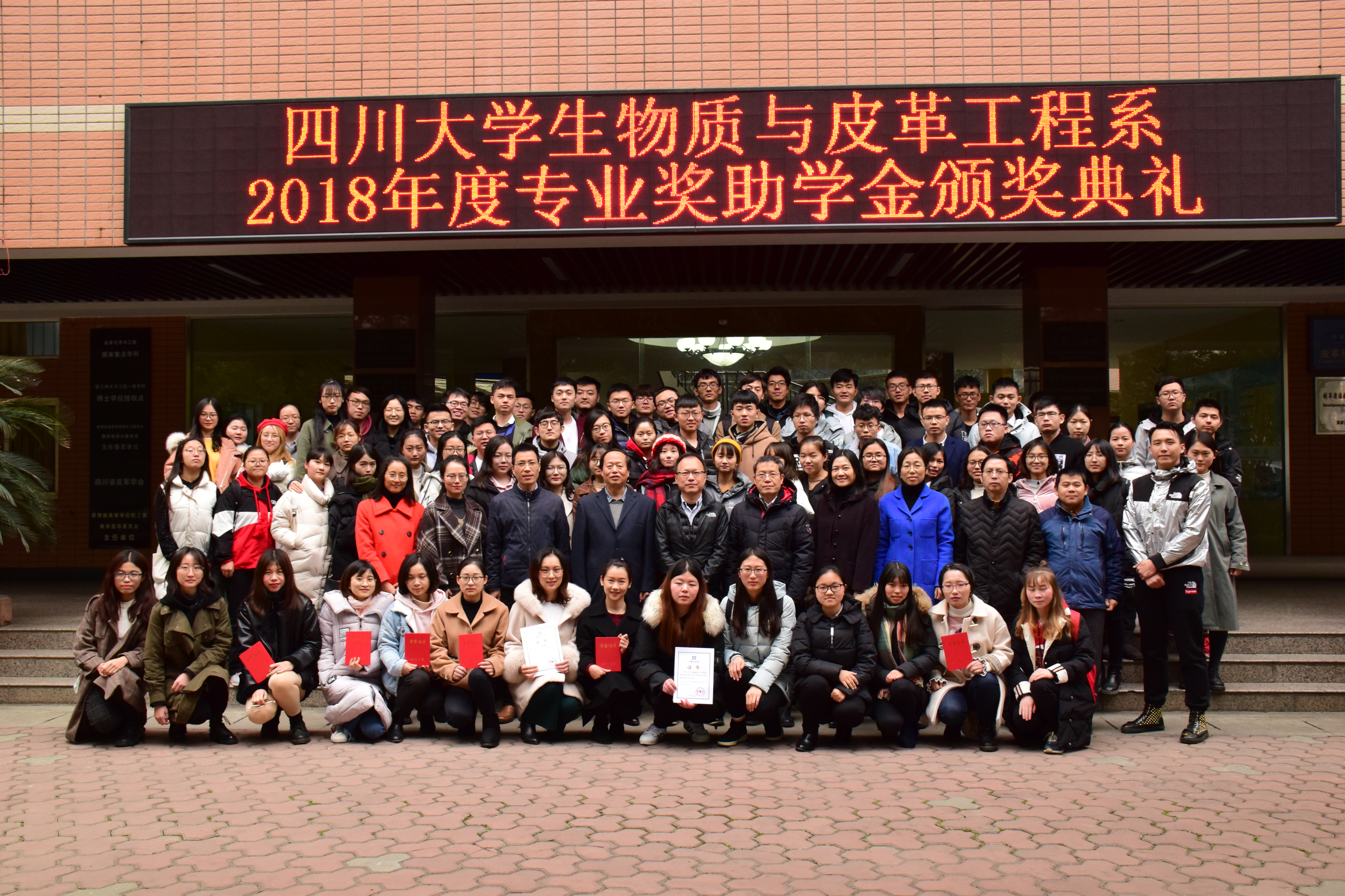 2018127日,生物质与皮革工程系举办本科生奖学金颁奖典礼。中国皮革协会奖学金、斯塔尔奖学金、广州美多绿奖学金、欣驰奖助学金、广东皮革校友会热爱专业奖学金颁奖典礼在望江校区皮革楼报告厅隆重举行。