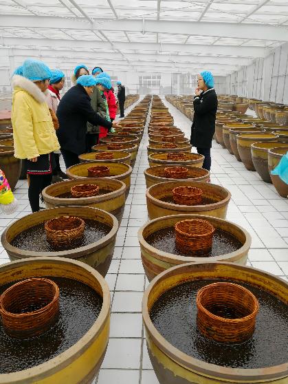 下午,大家来到成都鑫鸿望食品有限公司,负责人首先为大家介绍了公司的主要产品,接着带领大家参观了酿造车间。参观过程中,同学们对于车间设计、发酵工艺,以及不同客户需求下调味品生产的区别积极提问,收获了许多知识。