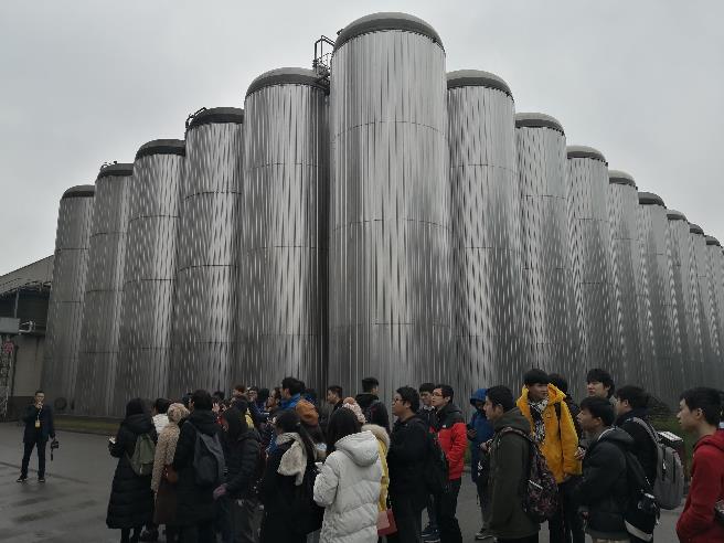 当天下午,大家来到了华润雪花啤酒四川区域公司。同学们首先参观了公司啤酒文化长廊,对啤酒的种类、不同类型啤酒的酿造工艺等都有了更加直观和深刻的认识。接着,大家参观了酿造车间及罐装生产线。华润雪花啤酒采用现代先进、成熟的生产工艺和一流的酿造、过滤设备进行生产,公司先进的设备以及井然有序的生产分工给大家留下了深刻的印象。