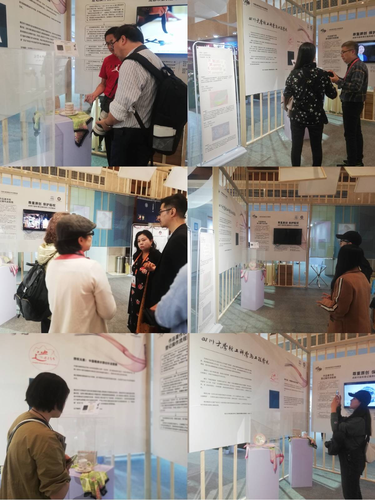 以“非遗正青春”为主题,本次非遗创意设计作品授权展中展示的作品,正是bw必威西汉姆联官网万门课程《走进“格子”,出演“格韵”》教学改革项目的教学成果——四川大学轻化工程(革制品设计方向)2016级本科生原创设计作品:《豆蔻》(作者谢玲)、《阡陌春秋》(作者谭雪玲)、《台(臺)》(作者王歆宇)、《窗外》(作者谭润香)、《秋季少女》(作者李蕾雅),以及其衍生文创产品。本次展出的作品将传统蜀绣文化融入到年轻一代生活时尚中的创意得到了主办方的好评,同时也引得来往观众及意向合作单位驻足参观和交流。
