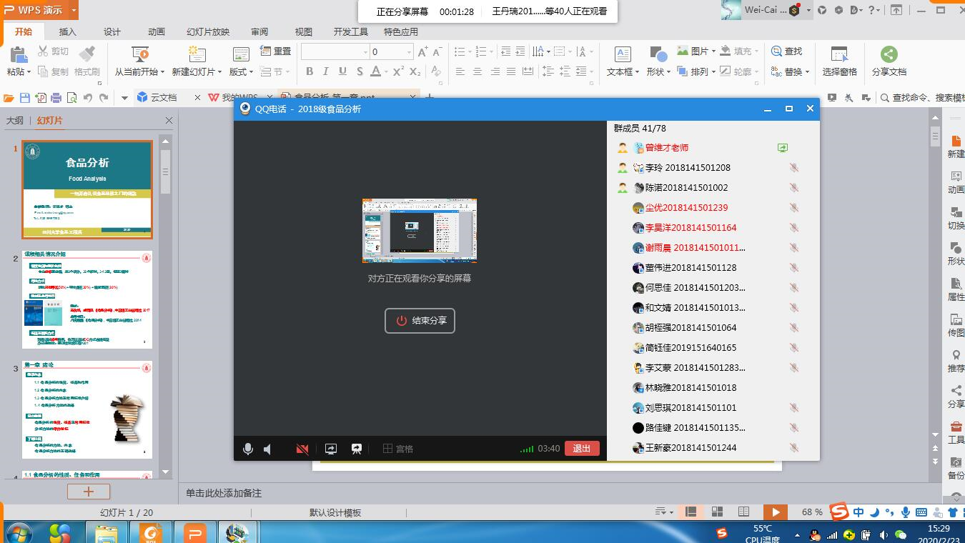 学院各教研室积极动员,组织教师参加培训,并开展了爱课堂、学习通、智慧树等平台的运用研讨。按照校院的既定工作方案,认真细致地开展线上授课准备工作,包括MOOC资源的引入、课程QQ群或微信群的组建、课程日历调整、课件准备等。截止于223日,各课程群已完成学生和学院督导人员入群、上传学习资料等工作。