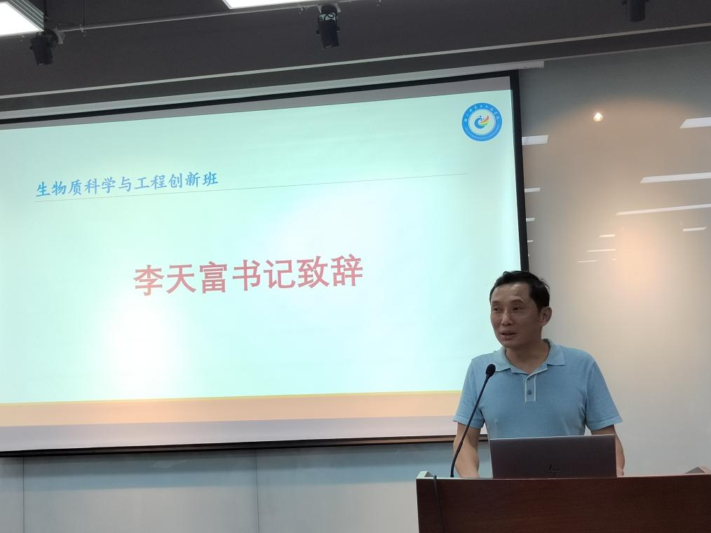 首先,学院党委李天富书记代表学院党政向经过选拔进入创新班的39名同学表示热烈祝贺,向为创新班建设付出辛勤努力的教师表示由衷感谢。李书记希望创新班同学能继续保持优秀,脚踏实地、追求卓越。同时,李书记指出,学院将持续加强支持,与生物质科学与工程创新班平台一起把学院的创新班办出特色、办出水平,努力提升学院本科人才培养质量。