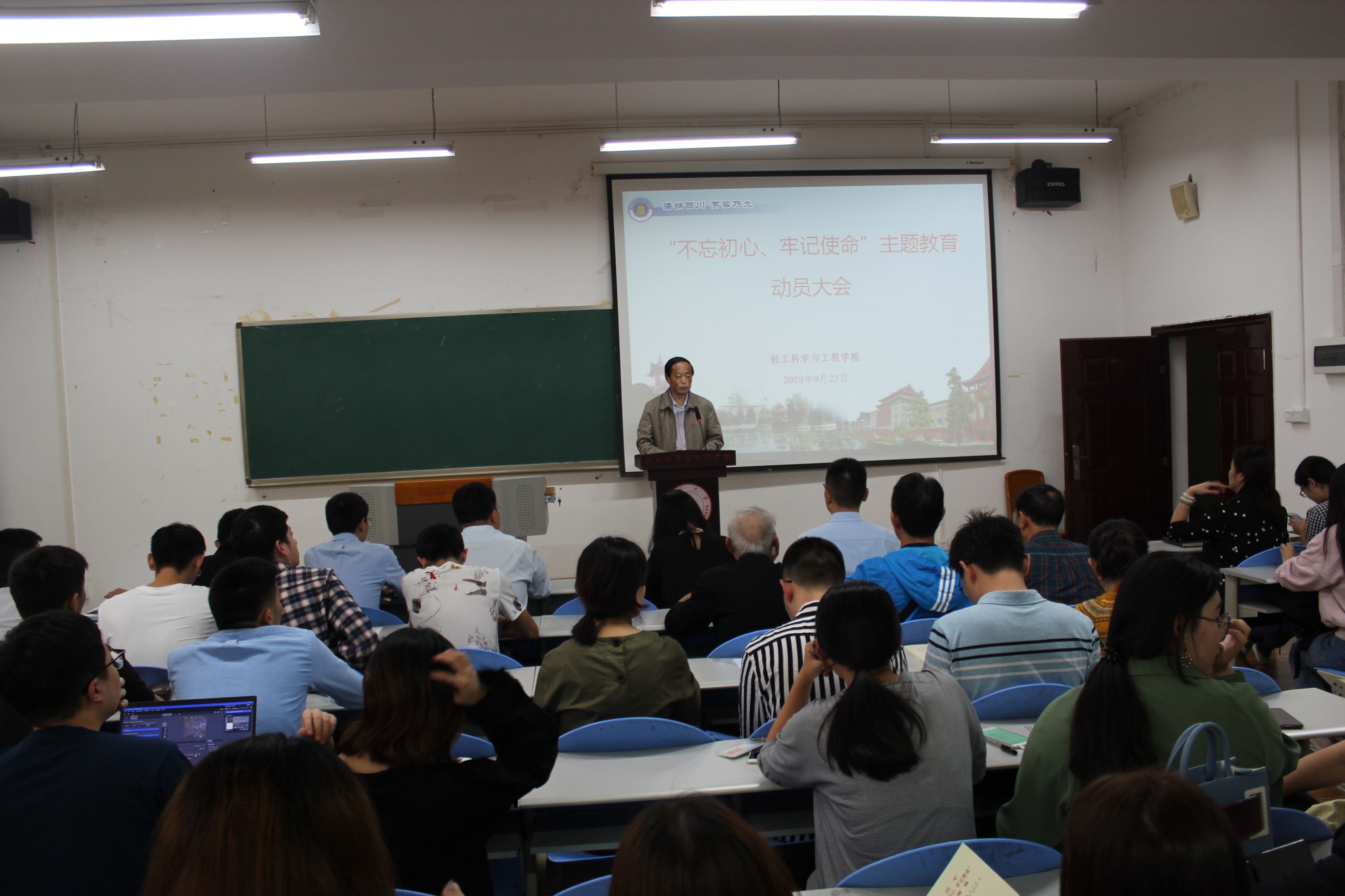 2019年9月23日下午,bw必威西汉姆联官网在纺工附楼205室召开“不忘初心、牢记使命”主题教育动员大会。学校第五指导组组长陈森(学工部部长)、组员蒋莉华(人事处副处长)、李宜(学工部军事科副科长)以及bw必威西汉姆联官网全体党员同志参加了本次大会,大会由何有节院长主持。