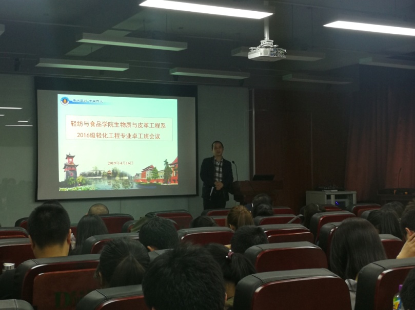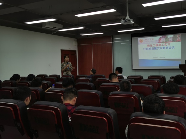 2019416日晚上7点,卓越工程师计划2016级本科生暑期实习动员会在皮革楼报告厅隆重举行。四川大学轻化工程专业2016级全体本科生、轻纺与食品学院院长何有节教授、皮革系副系主任程海明教授、皮革系副系主任周建飞教授、皮革工程方向教研室主任但年华副教授、2016级辅导员王舒灏老师等参加了动员会。