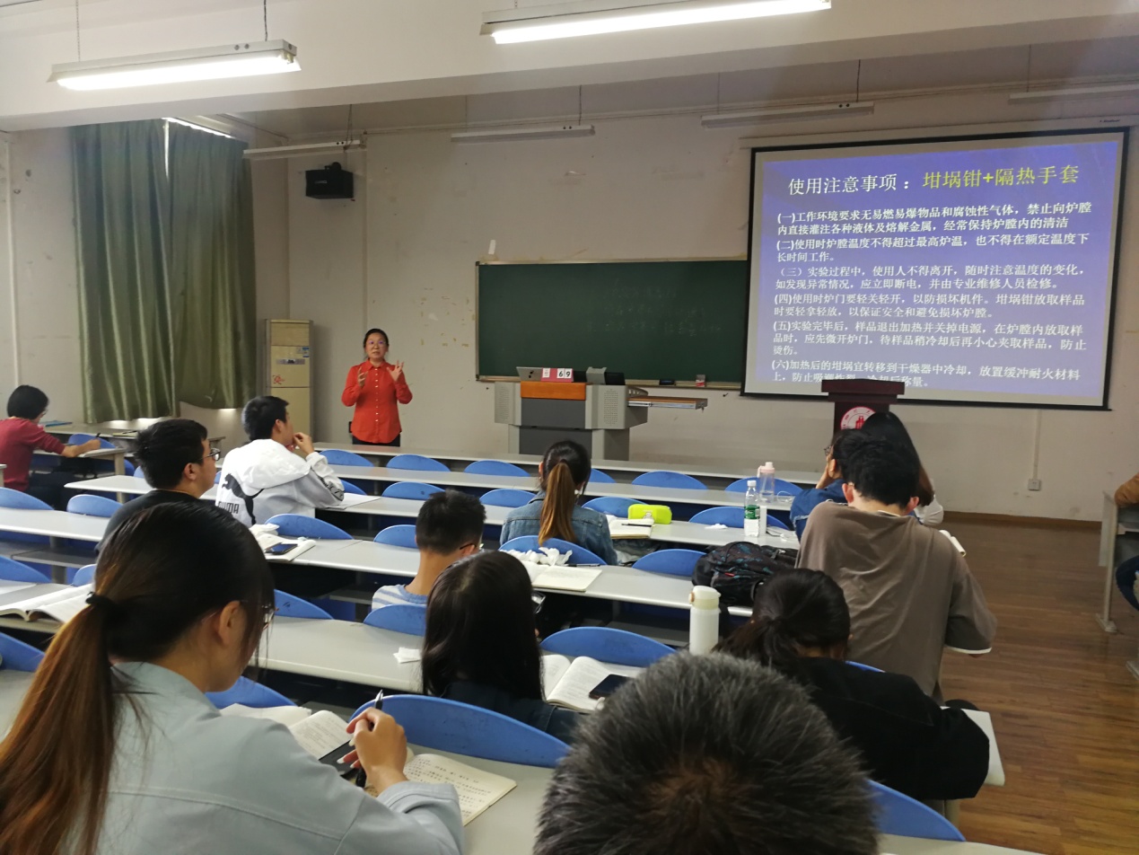 本次活动在纺工附楼205教室和107实验室举行,观摩学习我系具有二十多年实验教学经验的戴红副教授主讲的《皮革分析检验》课堂教学。戴老师将课程分为理论教学和实践教学两部分。在理论教学环节,戴老师详细讲解了实验原理和实验步骤,结合多年教学经验,用往届实验图片和事例强调了注意事项和实验安全。生动形象的讲解使同学们快速掌握了实验的核心知识。在实验教学环节,戴老师先示范了关键实验步骤,然后由学生全面操作,这样既提高了实验的成功率,又使学生领会了实验的诀窍。观摩期间,中青年教师与戴老师进行了实验教学交流,在实验准备、实验安全、先进仪器设备引进与使用等方面进行了广泛的交流。本次观摩活动的成功开展,对促进我系实验课程的授课水平、提高学生的实验动手能力,将起到积极的推动作用。