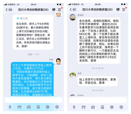 突如其来的新冠疫情打乱了本学期的正常教学计划安排。根据学校和学院不停课、不停学的要求,纺织工程教研室于20202月初先后多次召开线上教学研讨会,部署线上教学活动。并组织老师学习爱课堂、学习通、腾讯会议等线上教学工具,对遇到的问题进行答疑,确保每门课程都进行了妥善安排,落实了线上教学方案。