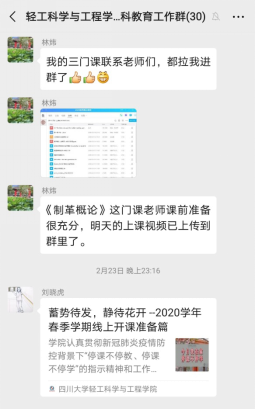 学院自22日开始着手准备线上教学的相关工作,25日制订《2020年春季学期教学工作预案》211日、217日两次召开本科教学工作电话会议,对线上教学相关工作进行了研讨,明确做好师生的全员发动,学生健康状况及学习条件的摸底,组建线上教学技术支持工作群、轻工MOOC+课程研讨群、轻工腾讯+课堂互助群,制定平台崩溃及学生保障条件不足等极端情况下的工作预案,做好教学督导等教学组织工作重点,根据线上教学的特点和培养工作链条,指导各系、教研室、课程组继续开展与线上教学相关的各项工作。