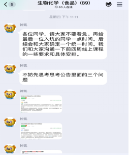 从检查情况来看,全院线上教学秩序总体良好,全院师生认真做好了新学期的各项开课准备,能以良好的精神面貌贯彻教与学的要求。任课教师提前做好了线上授课准备工作,如提前建好课程群、上传学习要求、教学大纲、电子教材、授课方式、课程考核方式等内容、建好SPOC课程等。上课时,任课老师采用多种形式的线上教学方式,上课时间老师发起了签到、调查问卷和讨论,师生进行有效互动,学生参与积极。有些课程紧跟社会热点问题,激发学生的学习热情,从而提高教学效果。如“生物化学”课程将目前新冠病毒的结构和功能融入了教学内容,对学生是非常好的教学素材,有利于引导学生的学习兴趣和对专业的热爱。