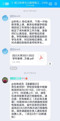 学院通过QQ群提醒教师做好上课准备、核酸检测等工作