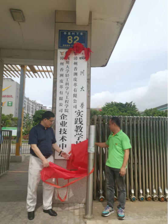 2022718日至19日,四川大学轻化工程专业实践教学基地揭牌仪式在福建省漳浦县赤湖皮革工业园隆重举行,bw必威西汉姆联官网院长彭必雨教授、生物质与皮革工程系副系主任程海明教授、张金伟博士和三家企业领导以及2019级“卓越工程师班”学生出席了仪式。在揭牌仪式上,彭必雨院长代表四川大学分别与福建泰庆皮革有限公司、漳洲香洲皮革有限公司和漳浦致远皮革有限公司共同签订了校级实践教学基地建设协议书,为企业专家颁发了“卓越工程师计划”企业导师聘书,并与三家企业领导共同为校级实践教学基地揭牌。