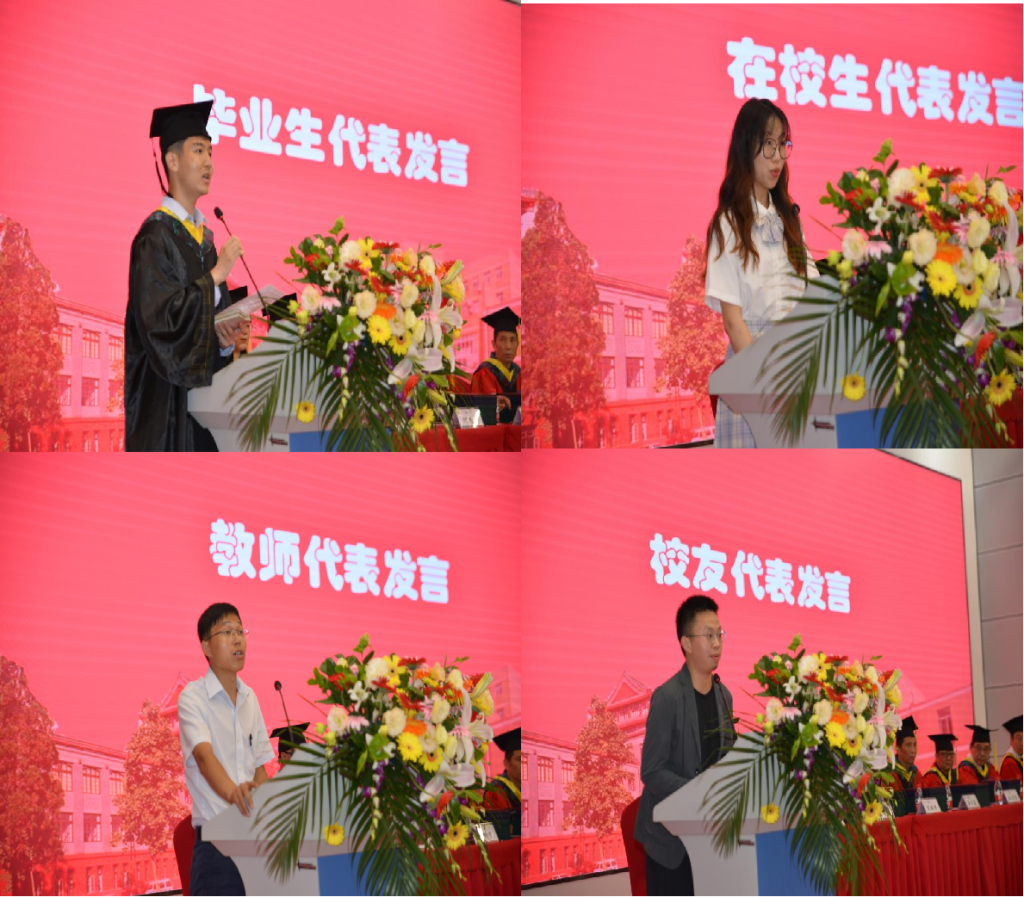 2014届轻化工程专业本科毕业生、2020年福布斯“亚洲30岁以下精英榜”上榜者,薪太软合伙人、首席产品官朱彬同志作为校友代表发言。他首先祝贺学弟学妹顺利完成学业,开启人生的新篇章,并从“选择、韧劲、合作”三个关键词分享了人生感悟,勉励学弟学妹们牢记川大校训:海纳百川,有容乃大。