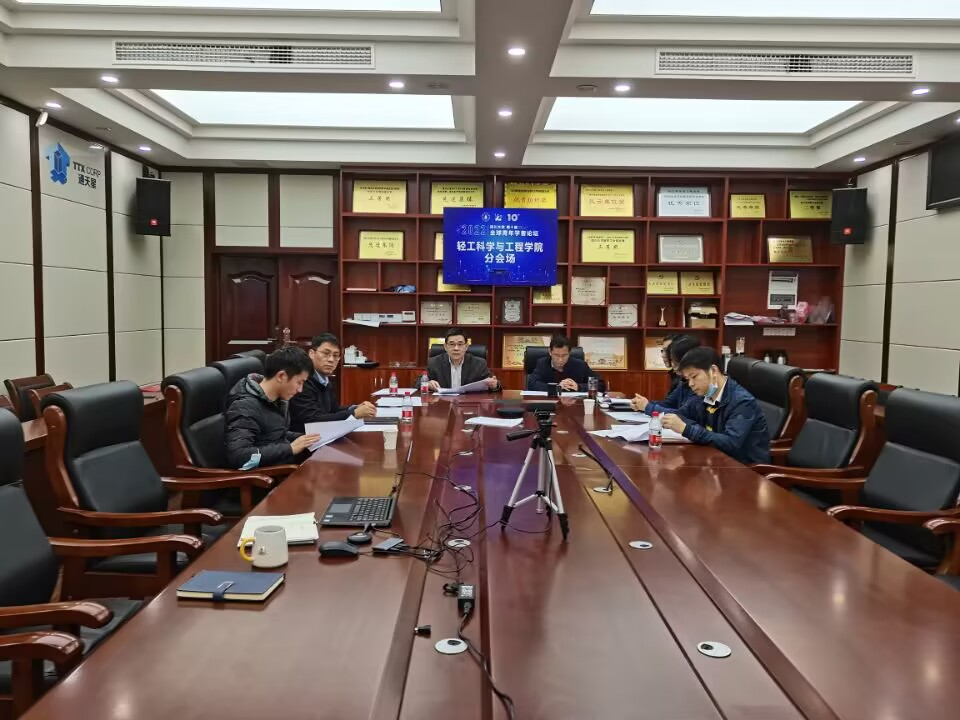 为进一步做好轻工学科海内外青年学者的联络工作,经学院党政办精心准备,轻工学科分论坛于2022年11月24日上午9:00在纺工附楼205会议室隆重举行。会议通过线上线下相结合的方式,邀请部分青年专家与来自于海内外的青年学者进行充分沟通和交流。学院党委李天富书记、彭必雨院长、冯国涛副书记、各学科青年专家代表线下参会,海内外青年学者通过视频连线线上参会。李天富书记主持本次分论坛。