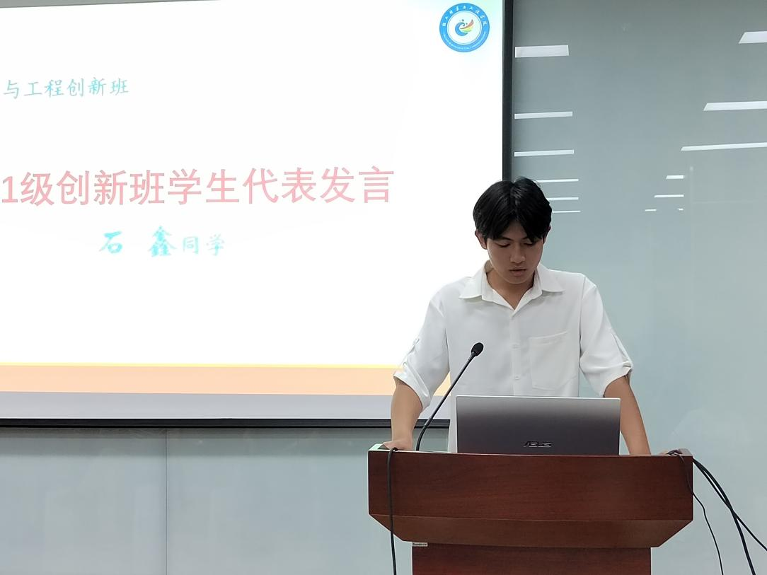 接下来,班主任许维星副研究员寄语同学们越努力、越幸运,在崭新平台上脚踏实地、不负时光。2021级创新班学生代表石鑫同学介绍了个人进入创新班平台后的成长经历,并分享了学习心得体会。