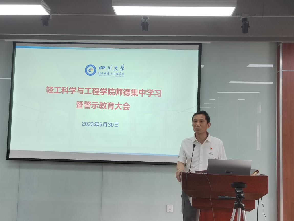 紧接着,按照学校相关工作要求,为进一步加强新形势下师德师风建设,健全学院师德建设长效机制,学院党委李天富书记围绕《四川大学开展师德集中学习教育实施方案》带领全院教职工进行集中学习。李书记重点围绕习近平总书记关于“四有”好老师、“四个引路人”、“四个相统一”、“经师”和“人师”统一的“大先生”等重要指示要求进行集中学习。同时,带领全体教职工再次学习了新时代教师职业行为十项准则。随后,李书记选取《四川大学师德师风建设与制度文件汇编》中教育部关于学术不端、师德失范、违反科研诚信案件以及《师德集中学习教育参考资料》中典型案例对全院教职工开展了警示教育。